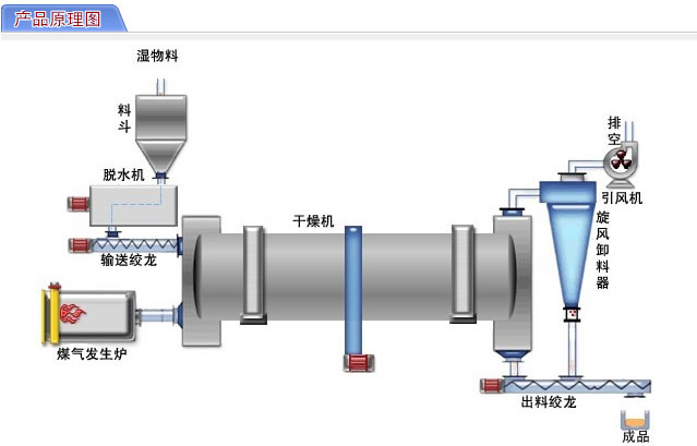 一、煤泥烘干機結構及工作原理 煤泥烘干機主要由熱源、打散裝置、帶式上料機、進料機、回轉滾筒、帶式出料機、引風機、卸料器和配電柜構成。該套設備工作原理如下:煤泥由于具有一定的粘性,在烘干過程中濕煤泥進入烘干機后分以下幾個工作區(qū):一是導料區(qū),濕煤泥進入此區(qū)與高溫熱風接觸迅速蒸發(fā)水分,物料在大導角的抄板抄動下,形不成粘結便被導入下一個工作區(qū); 二是清理區(qū),濕煤泥在此區(qū)被抄板抄抄起形成料幕狀態(tài),物料落下時易形成粘結滾筒壁現(xiàn)象,在此區(qū)由于設備設計有清掃裝置,清掃裝置便十分合理地清掃了內(nèi)壁粘附的物料,在這個過程中,清掃裝置對于物料 團球結塊也起破碎作用,從而增加了熱交換面積,提高了干燥速率;三是傾斜揚料板區(qū),濕煤泥在此區(qū)已 呈低水分松散狀態(tài),物料在此區(qū)已不具有粘結現(xiàn)象,經(jīng)過熱交換后物料達到所要求的水分狀態(tài),進入后 的出料區(qū);四是出料區(qū),滾筒在此區(qū)不設抄板,物料在此區(qū)滾動滑行至排料口,完成整個烘干過程。 二、主要特點 1、烘干機抗過載能力強,處理量大,燃料消耗少,干燥成本低; 2、采用順流干燥方式,煙氣與濕物料由同一側進入干燥機,可以利用高溫煙氣獲得很高的蒸發(fā)強度,烘干機溫度低,熱效率高; 3、可根據(jù)不同的物料性質(zhì)改變運行參數(shù),使物料在烘干機筒體內(nèi)能夠形成穩(wěn)定的全斷面料幕,質(zhì)熱交換更為充分; 4、新型給料、排料裝置,滾筒干燥機給料堵塞、不連續(xù)、不均勻和返料等現(xiàn)象,降低了除塵系統(tǒng)的負荷; 5、新型內(nèi)部結構,強化了對已分散物料的清掃和熱傳導作用,消除了筒體內(nèi)壁的沾粘現(xiàn)象,對物料水分、粘性的適應性更強; 6、烘干機實現(xiàn)了 “ 零水平推力 ” ,大大減少了擋托輪的磨損,筒體運轉平穩(wěn)可靠; 7、烘干機采用 “ 調(diào)心式托輪裝置 ” ,使托輪和滾圈的配合永遠呈線性接觸,從而大大降低了磨損和動力損耗; 8、可根據(jù)用戶要求控制產(chǎn)品粒度和水分,烘干煤泥時產(chǎn)品水分可達 8% 以下,粒度可控制在 8mm 以下。 三、工藝流程圖